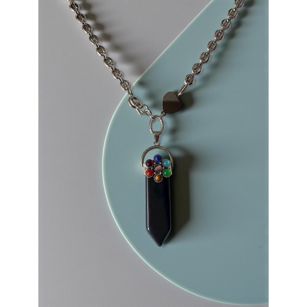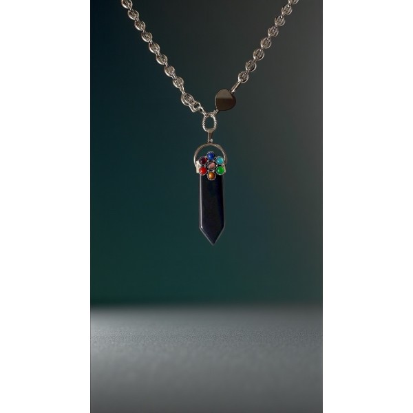 COLAR OBSIDIANA NEGRA X SETE CHAKRAS