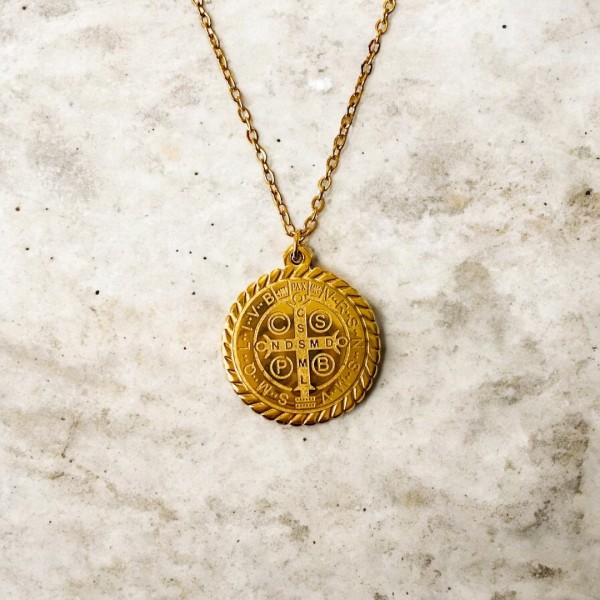 💎 Materiais: aço inoxidável, medalha em aço com banho de ouro, Madre-Pérola natural e Obsidiana.