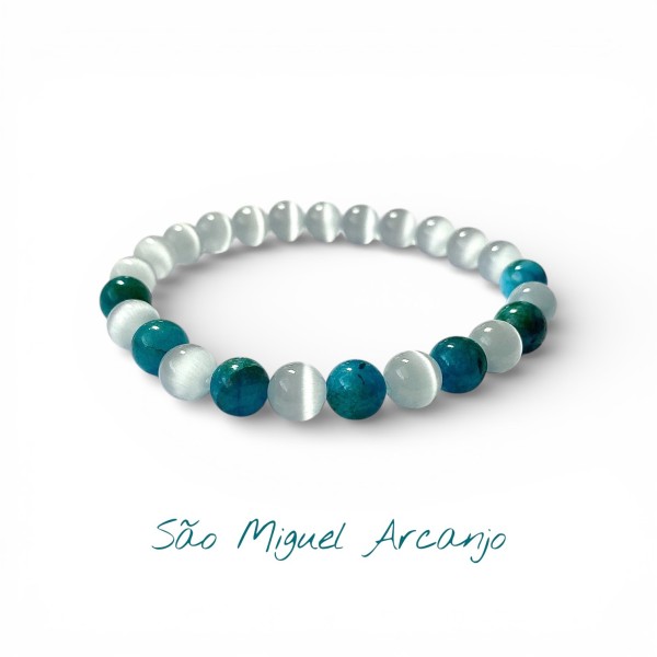 A combinação de tons azuis profundos com o brilho místico do Olho de Gato cria uma jóia cheia de intensidade espiritual. Cada pedra representa a espada de luz de São Miguel, afastando negatividade e fortalecendo a tua energia interior.