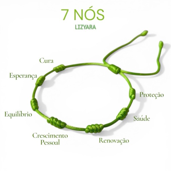 A pulseira de sete nós verde clara é um símbolo espiritual muito especial, ligado à proteção, intenção e energia pessoal. A cor verde está associada à cura, esperança, equilíbrio emocional e prosperidade 🌿