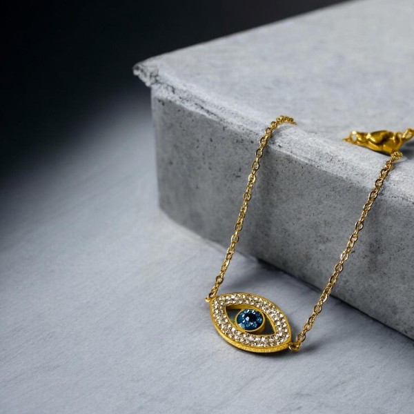 O olho turco, também conhecido como Nazar, é um dos amuletos mais antigos do mundo. Representa proteção contra energias negativas, inveja e mau-olhado. O centro azul simboliza serenidade, verdade e proteção espiritual, ajudando-te a manter o equilíbrio emocional mesmo nos dias mais desafiantes.