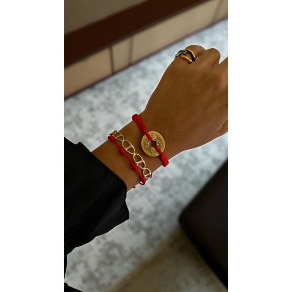 O seu design em cordão vermelho trançado envolve o pulso com força e vitalidade, representando coragem, proteção e sorte.
